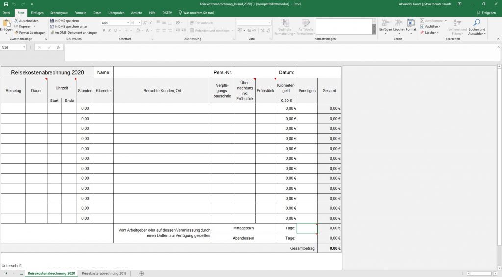Das Praxistool zur Reisekostenabrechnung sieht z.B. so aus: